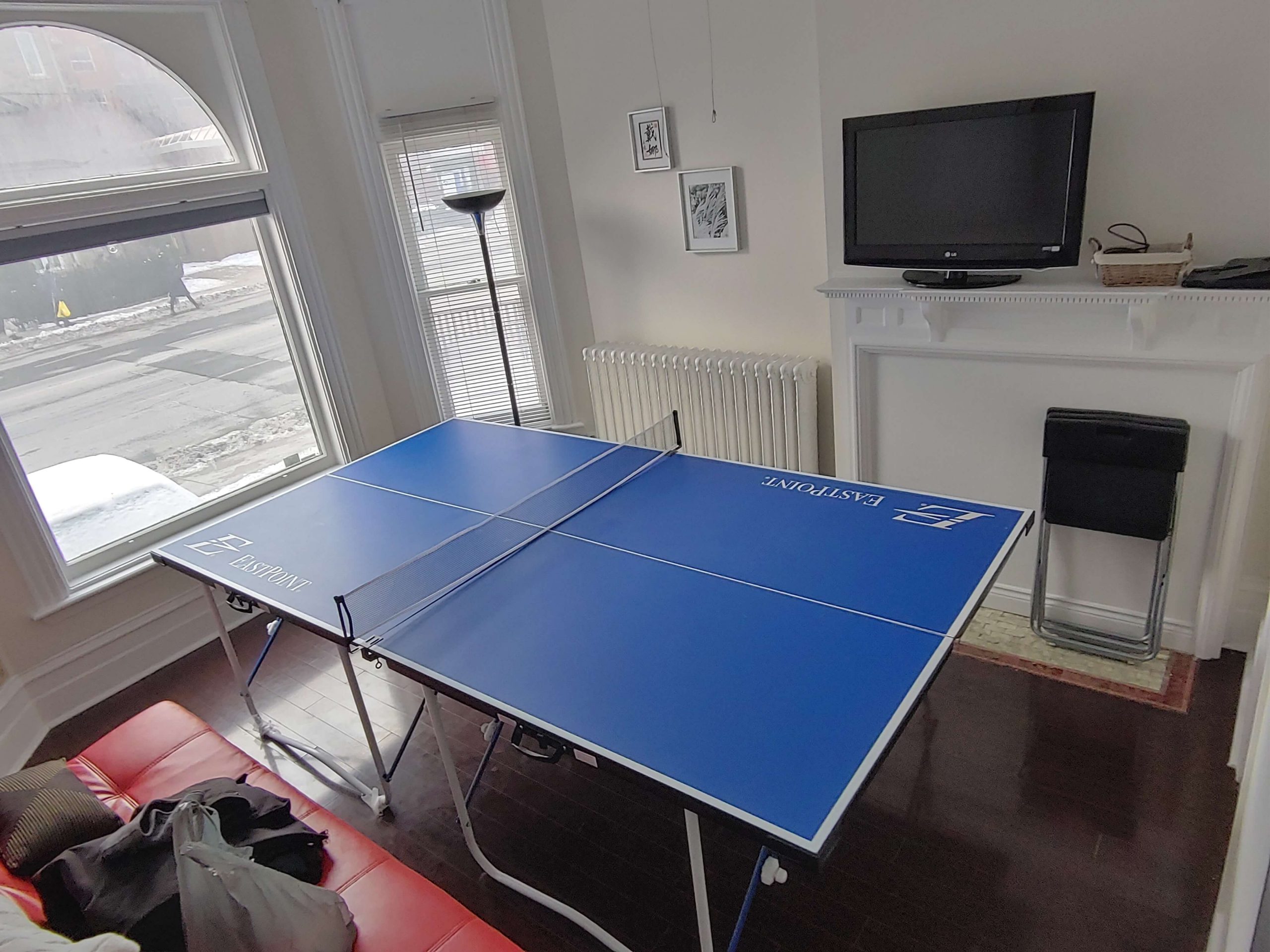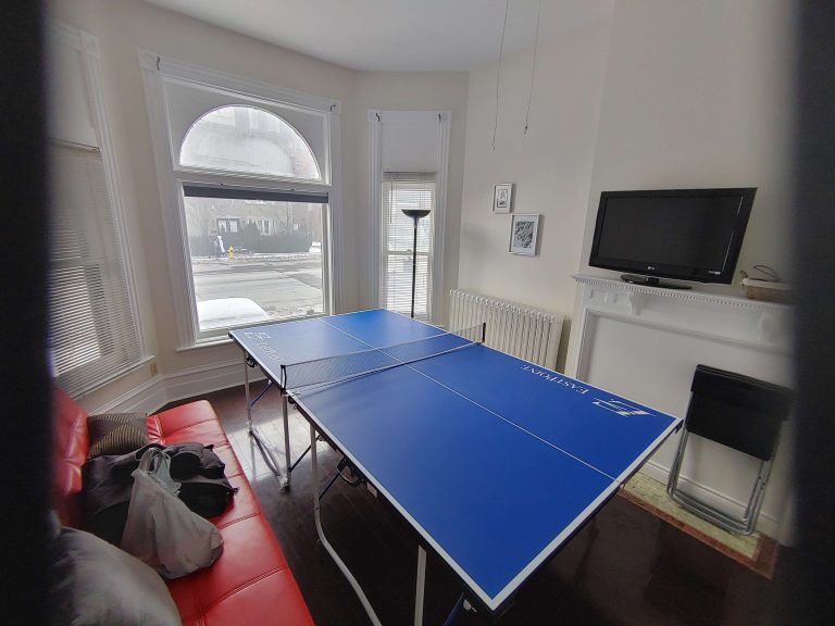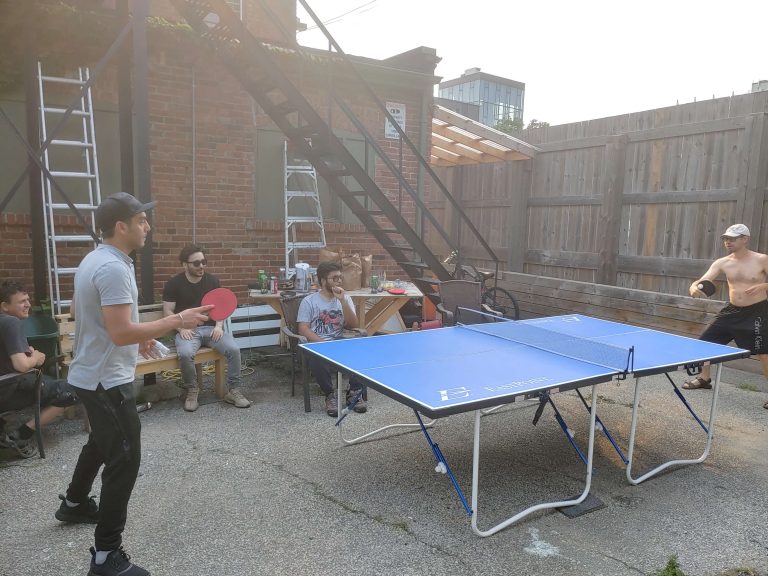 Alisa is kindly allowing us to use her sweet setup for pong rallies. She runs a coliving business with her partner and they’re all about community. I believe it’s a 14 bedroom house with tenants from all over Canada & the world.